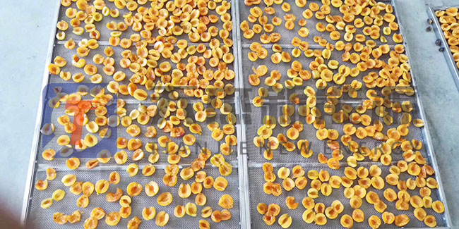 【黃杏干烘干機烘干工藝】:杏干烘干房烘干過程:溫度45度,濕度45%,升溫后恒溫共8小時,此階段杏子出水比較大,如杏干烘干設(shè)備熱泵排濕能力不夠,需要開強排口進行排濕.