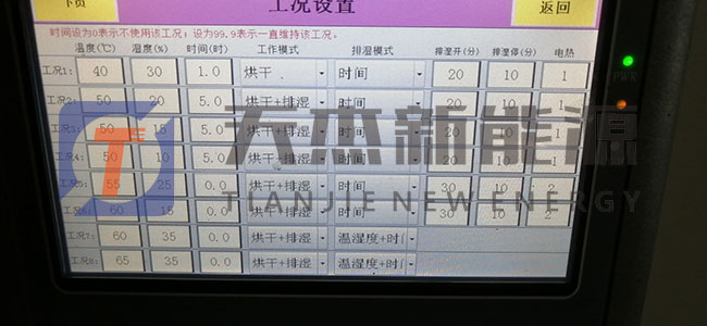 4、經(jīng)過5個(gè)小時(shí)的烘干后,把溫度調(diào)整為50℃-55℃,運(yùn)行時(shí)間8濕度控制在40%。
