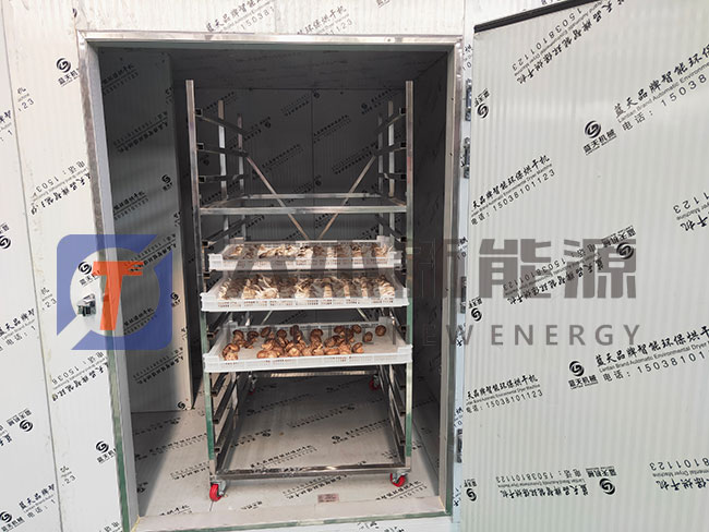 【香菇烘干機(jī)烘干工藝】:把香菇均勻放置全自動香菇烘干機(jī)的托盤,切勿過量堆集擺放,以免造成烘干不均勻的情況,然后推進(jìn)香菇烘干機(jī)內(nèi).以江蘇香菇烘干機(jī)客戶為例