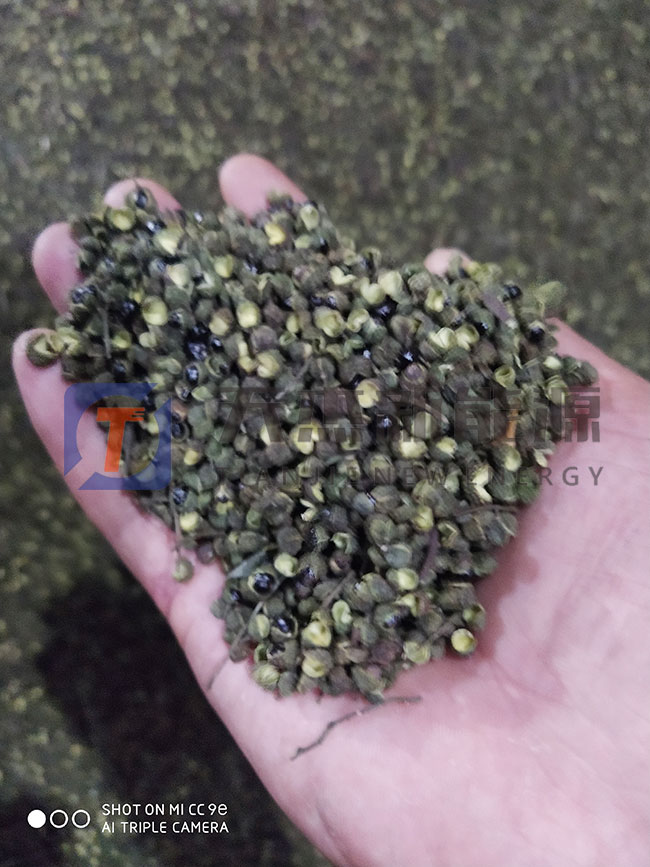 將需要烘干的花椒處理后成堆均勻的放進花椒烘干池等待烘干