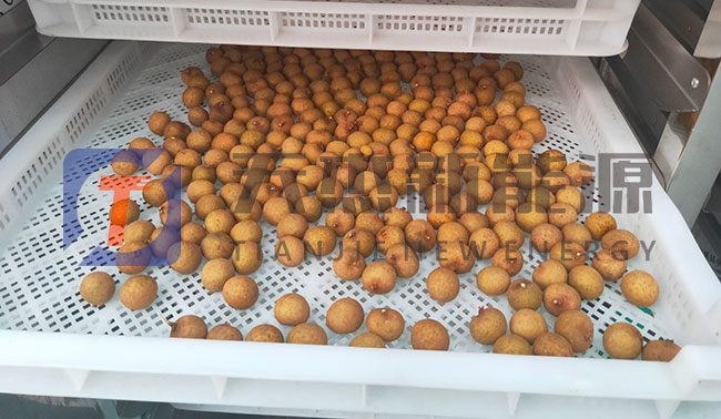 將清理好的新鮮龍眼放入托盤送入龍眼烘干機(jī)內(nèi)