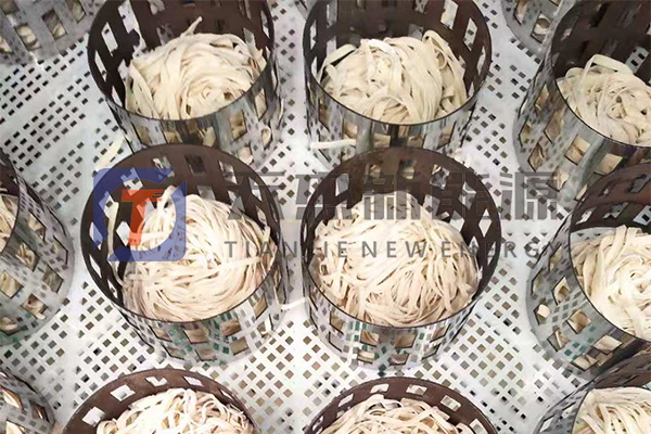 一、自然干燥:就是在風(fēng)和日暖(氣溫不低于20℃)相對濕度 60%一 80%的地區(qū)或季節(jié),將濕面條掛在掛桿上,自然風(fēng)干。由于烘干時(shí)間長,因此產(chǎn)品質(zhì)量好且不易出現(xiàn)酥面。